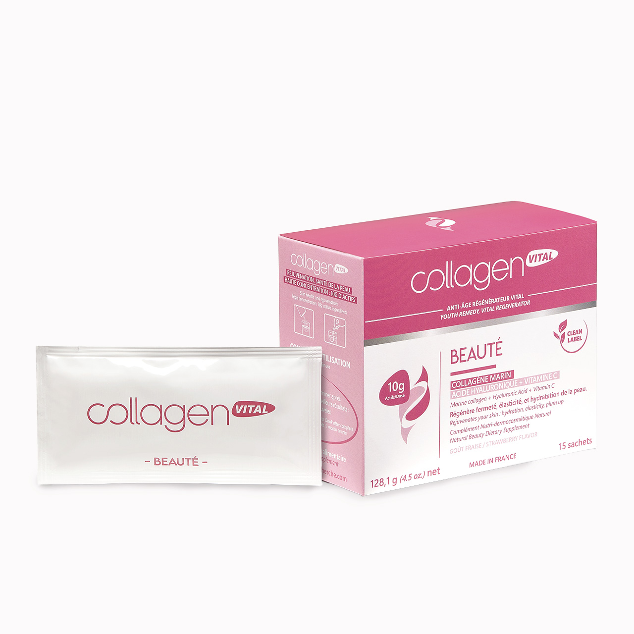 Natural nutricosmetic: regenerates skin plump up, elasticity and hydration. Reduces fine lines and wrinkles.